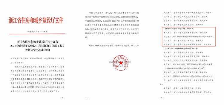 近日,浙江省住房和城鄉(xiāng)建設局發(fā)布《2023年度浙江省建設工程錢江杯(優(yōu)質(zhì)工程)考核認定名單的通知》,由我司承建的磐安農(nóng)商行總部大樓工程項目榮獲2023年度浙江省建設工程“錢江杯”優(yōu)質(zhì)工程獎!