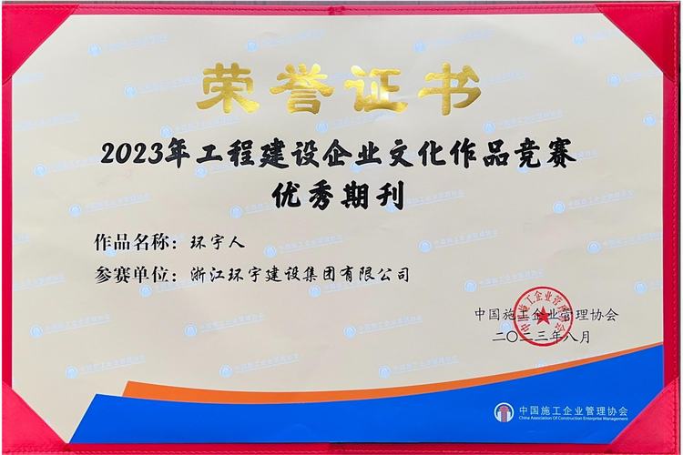8月16日-8月18日由中國施工企業(yè)(yè)協(xié)(xié)會(huì)舉辦的2023年工程建設(shè)(shè)行業(yè)(yè)文化大會(huì)在湖北武漢隆重舉行。會(huì)上發(fā)(fā)布了2023年工程建設(shè)(shè)企業(yè)(yè)文化建設(shè)(shè)系列活動(dòng)成果,由環(huán)(huán)宇集團(tuán)(tuán)主辦的《環(huán)(huán)宇人》內(nèi)(nèi)刊被評選為“優(yōu)(yōu)秀期刊”。這也是《環(huán)(huán)宇人》第三次獲得此殊榮。