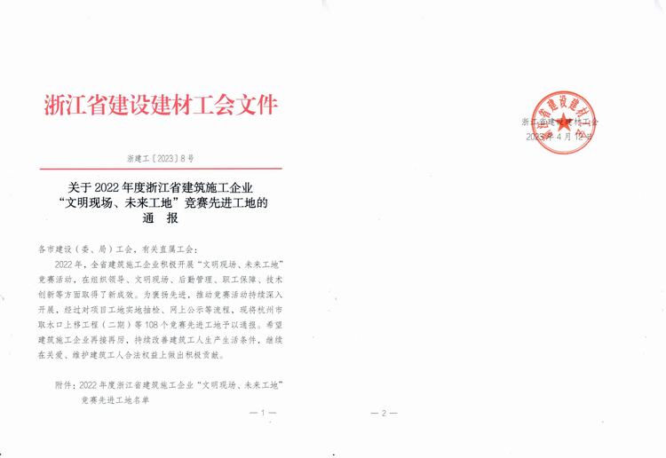 由我司承建的陽明故居及紀(jì)(jì)念館EPC總承包項(xiàng)(xiàng)目、綠云路智慧快速路一標(biāo)(biāo)喜獲2022年度浙江省“文明現(xiàn)(xiàn)場、未來工地”競賽先進(jìn)(jìn)工地。