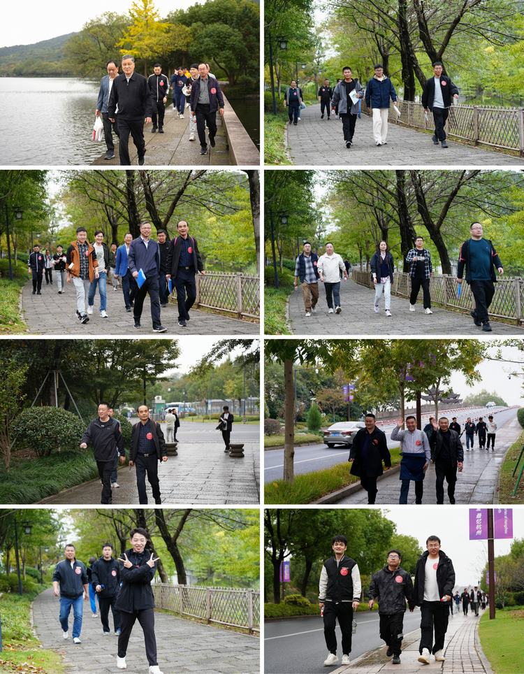 在風(fēng)景秀麗的湘湖湖畔,以湘湖西門為起點,途徑政和橋、德風(fēng)橋、凈瀾亭、越堤、西施別越、湘湖水街等美景。環(huán)宇人穿行在綠蔭、亭臺樓榭之中,浩浩蕩蕩,用腳步丈量湘湖之美。在徒步過程中大家相互鼓勵,攜手并進(jìn),在煙雨朦朧中感受湘湖的魅力與詩意,10公里的行程也不覺那么漫長。徒步隊伍最終集結(jié)在湘湖大院,進(jìn)行休整,并抽取幸運(yùn)大獎。